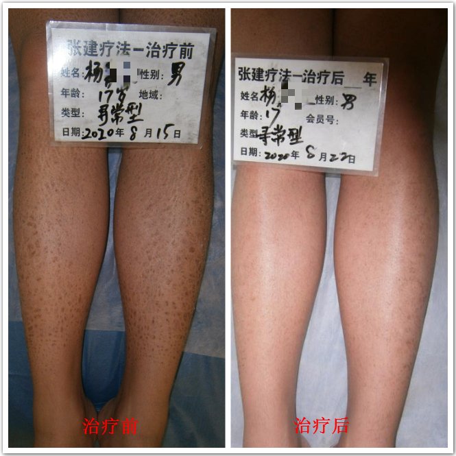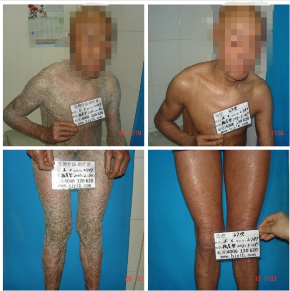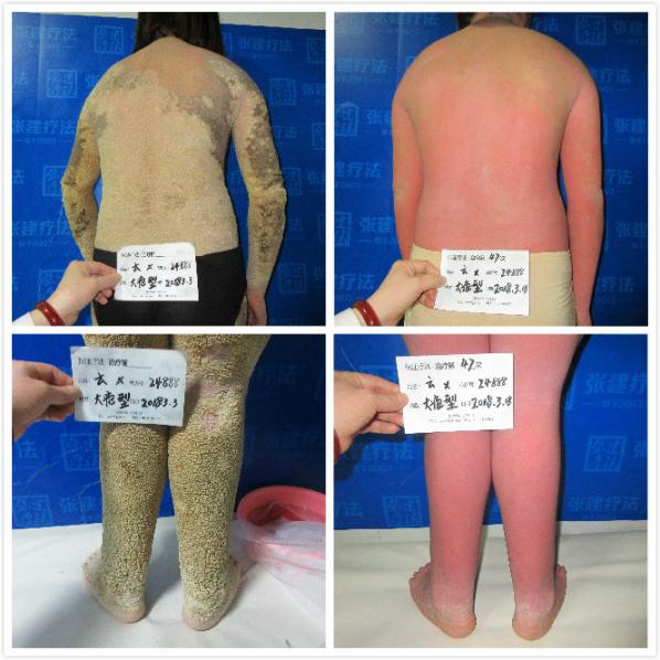 周先生,男,28歲,患魚(yú)鱗病20多年,久治不愈。2013年1月,來(lái)到張建療法接受治療,八天后,周先生身上的鱗屑全部脫落,皮膚光滑滋潤(rùn),