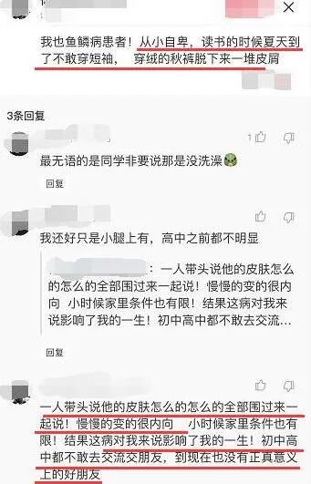 魚鱗病朋友皮膚會有大量皮屑、魚鱗樣或蛇皮樣的紋路,這不僅會給患者帶來外表焦慮,更會給魚兒朋友造成嚴(yán)重的心理傷害。相信很多家長和青少年魚兒朋友對此都深有體會。