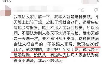 患有魚鱗病的青年男女有的因此病失去戀愛和成婚的權(quán)力,會受到另一半的嫌棄或不理解。還有一部分人是由于從小受到的異常眼光,而導(dǎo)致自身排斥與異性交往、戀愛。(我們接診的患者中有很多此類病例,印象比較深的是一位28歲的魚兒,家里安排相親都不想見,不讓家里安排,拒絕接觸、談戀愛,還有的38歲了,不敢輕易結(jié)婚,有的甚至因為魚鱗病,怕遺傳給孩子而選擇丁克,不生孩子。)